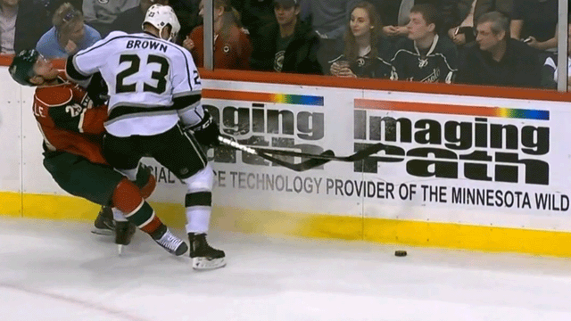 Brown fired up the Wild with a vicious-looking elbow to the jaw of Jason Pominville in the second period that went without penalty and knocked Pominville on his back.