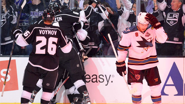 In the opening minutes, he landed big hits on Galiardi and James Sheppard, and the Kings followed his lead with a physical, grinding effort that negated the Sharks’ speed and skill. Los Angeles also raised its game on faceoffs, winning more than 50 per cent for the first time in a series dominated by Joe Thornton in the circle.
