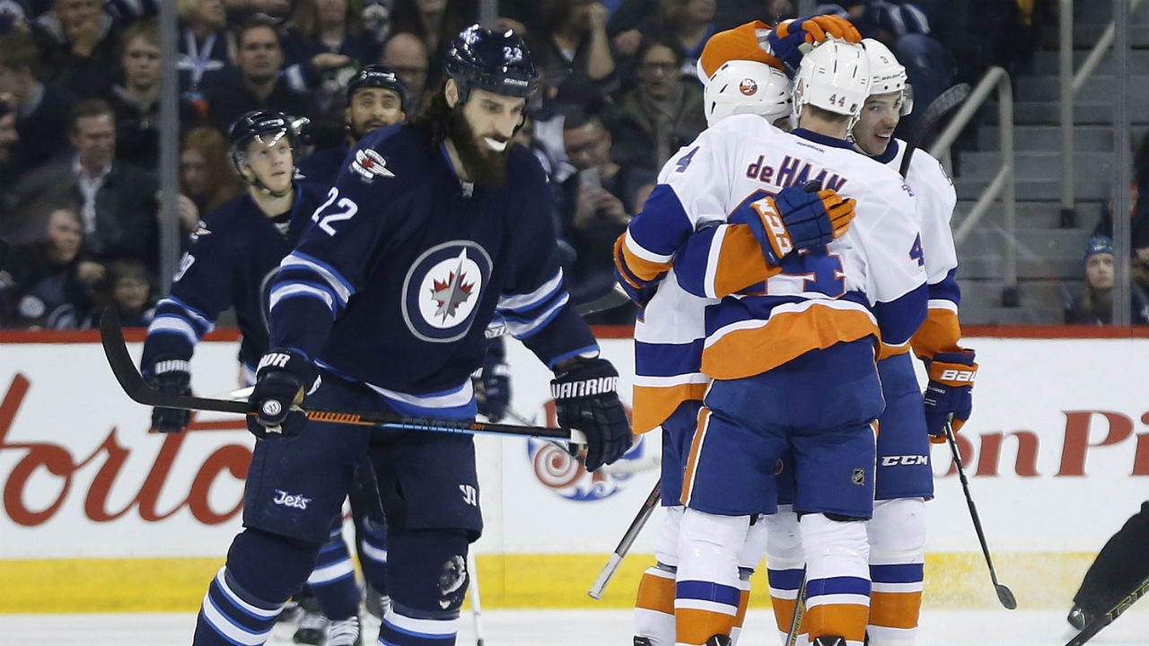 Islanders winger Brock Nelson blasted the puck toward the net, but it hit Jets forward Nikolaj Ehlers in the face and Okposo got the rebound and shot it in past goalie Michael Hutchinson.