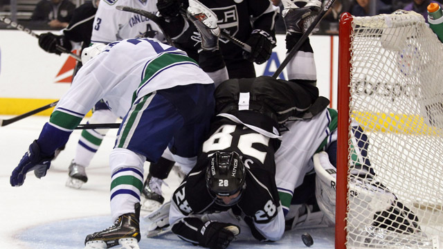 Luongo made his return to the lineup on Saturday after missing three games with a “lower-body” injury. The 34-year-old was sharp until a crease-crash by Kings’ captain Dustin Brown pushed the goalie back into his net and knocked his helmet off.
