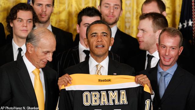 U.S. President Barack Obama honoured the Boston Bruins for their 2011 Stanley Cup championship and charitable work off the ice on Monday afternoon, welcoming the entire team to the White House.