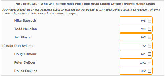 leafs-coach-odds Mike Johnston April 16, 2015, 5:56 PM Mike Johnston April 16, 2015, 5:56 PM Sportsnet.ca no longer supports comments. LATEST DEFAULT NEWS