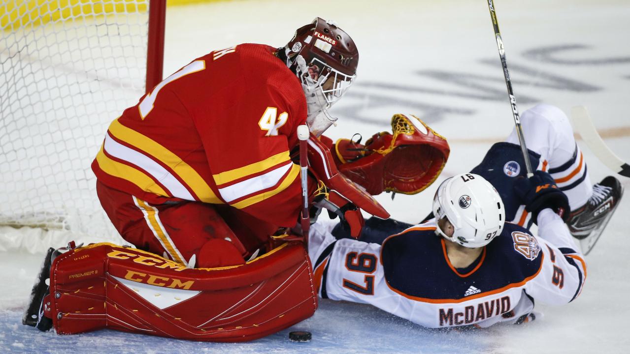 Connor McDavid was blowing by Calgary’s Mark Giordano on his way to the net when the Flames defenceman reached out and knocked the feet out from under the charging Oilers captain. McDavid careened into the goal post and goalie Mike Smith, and as McDavid lay there on his side, he appeared to mouth the words, “It’s broken.”
