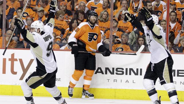 Long despised in Philadelphia, Crosby scored his second goal of the series on a deflection that tied the game at 3-all in the first. Staal followed with a goal from the slot for a 4-3 lead and the Penguins never looked back.