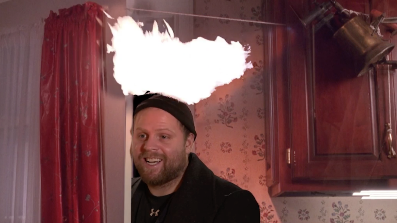 Gawk as Phil Kessel has his … hair … burned off with a blow torch. “Where are you, you little creep?” he says, presumably to Tyler Bozak.