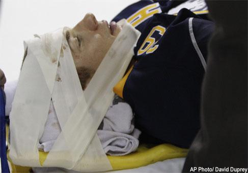 For 15 minutes Pominville didn’t move while on his back on the ice as emergency medical personnel and Sabres trainers slipped a flat board underneath him to get him on the stretcher, and his head and neck were stabilized. While he was wheeled off he was alert, moved his right arm and was seen talking.