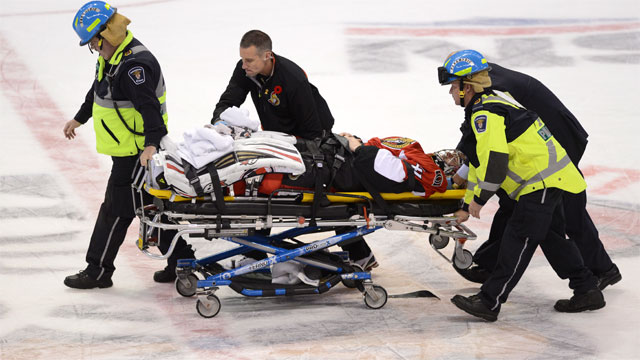 Ottawa Senators goaltender Craig Anderson sustained a neck injury and was stretchered off the ice in Sunday afternoon’s shootout loss to the Dallas Stars after taking a knee to the head from Valeri Nichushkin.
