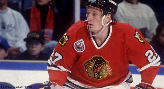 Chicago opened the post-season against the St. Louis Blues and a red-hot Brett Hull, son of former Blackhawks great Bobby. Brett was coming off his third consecutive 70-goal season, but Chicago held him to a modest (by Brett’s standards) eight points in eliminating the Blues in six games.