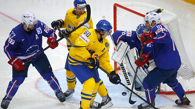 MINSK, Belarus — Defending champion Sweden edged France 2-1 at the world hockey championship on Thursday while Finland downed Belarus 2-0, and the United States suffered a second straight loss, 6-5 to Latvia.