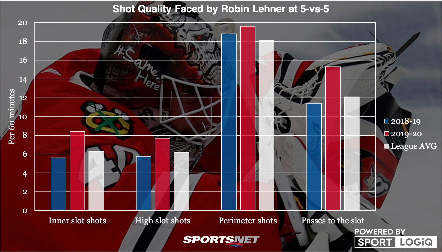 Sometimes you make a bold prediction, and it doesn’t turn out very well. There’s lots of season left to play out, but my assumption that Robin Lehner would struggle in Chicago under the extra pressure provided by the terrible team defence in front of him compared to what he saw in his breakout season with the New York Islanders is turning up poorly.