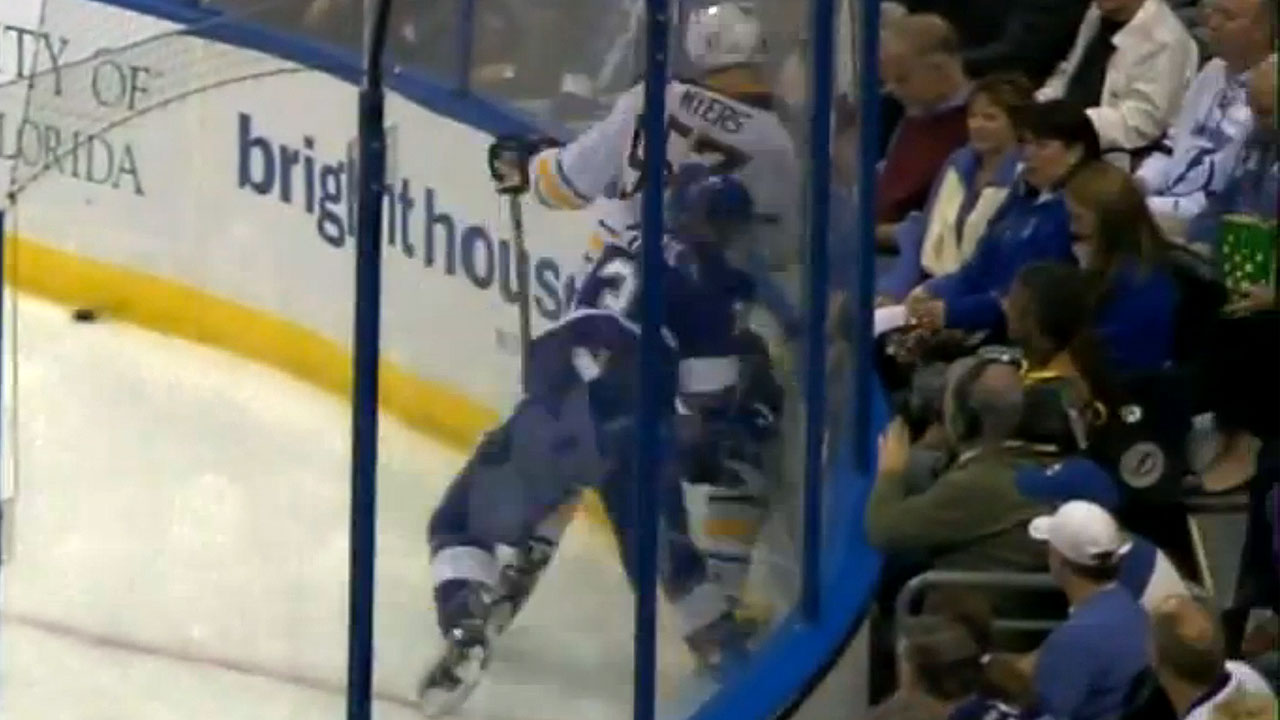 Myers took a two-minute penalty for an illegal check to the head against Tampa Bay Lightning centre Cedric Paquette in the first period of play at the Amalie Arena on Friday.