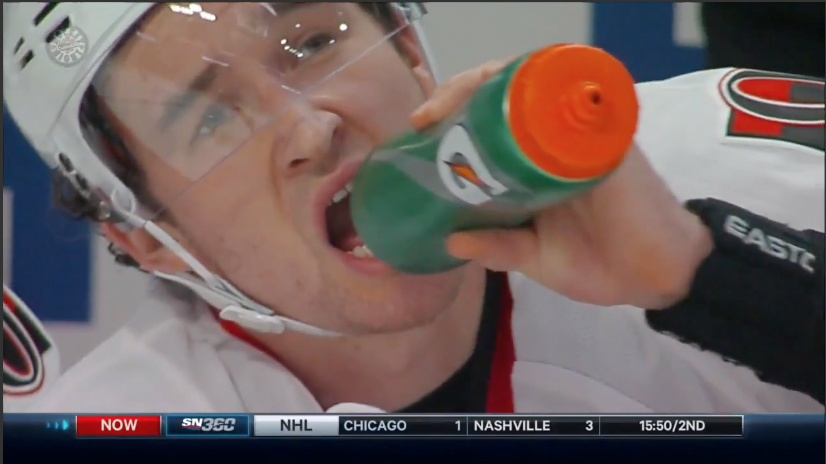 My favourite Stone clip from the opening night of the 2015 Stanley Cup Playoffs was when he forgot how to use a water.