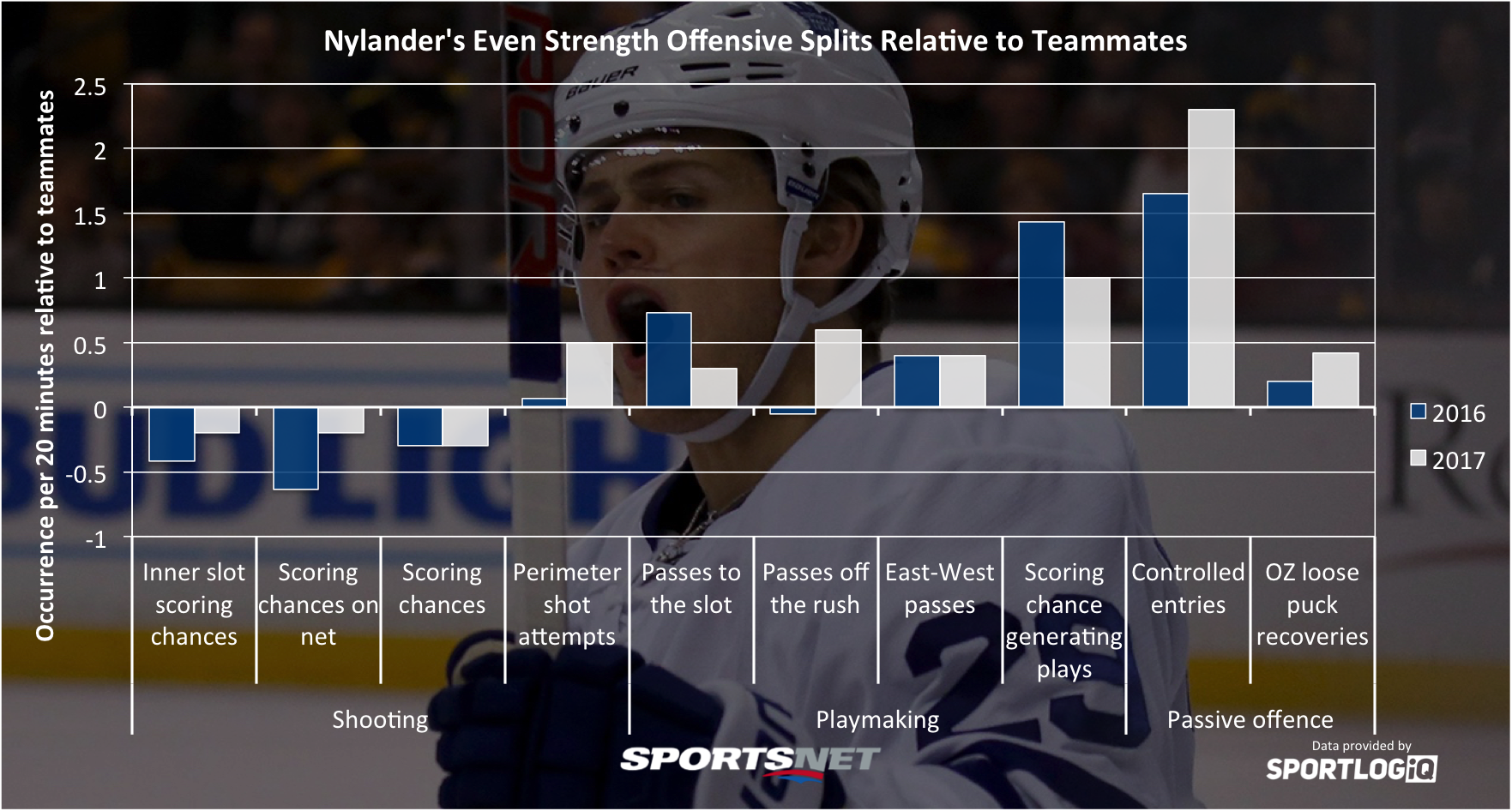 That’s a staggering improvement offensively, so the question is how much has changed in Nylander’s game to create that disparity?