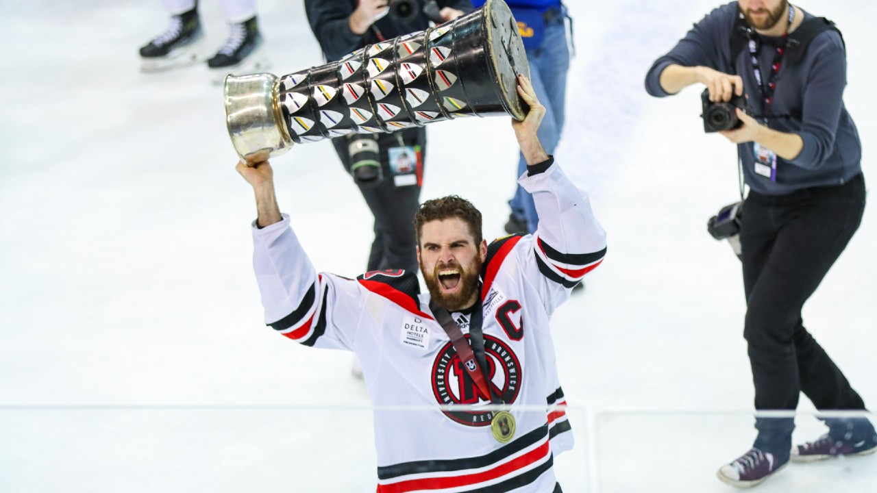 Austen Keating’s goal and two assists pushed the Reds to a 4-0 victory against the Université du Québec à Trois-Rivières Patriotes on Sunday for the Fredericton school’s 10th national championship, ninth under legendary head coach Gardiner MacDougall.