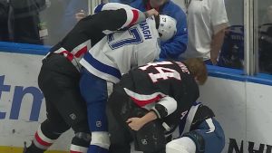 Malcolm Spence (Erie) added a power-play marker in the third period, and Kashawn Aitcheson (Barrie Colts) scored a strange final goal of the game, blasting a shot home from the point with 5:51 remaining in the frame — even though no one, except seemingly Aitcheson — realized the puck touched twine.
