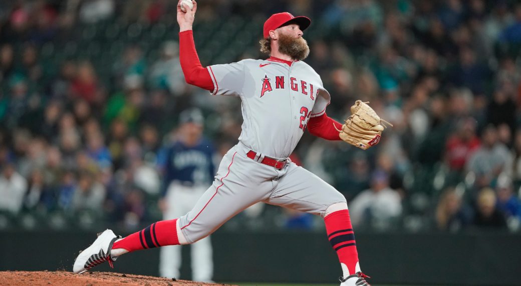 ANAHEIM, Calif. (AP) — Angels reliever Archie Bradley broke a bone in his elbow while climbing over the dugout railing during Los Angeles’ massive brawl with the Seattle Mariners on Sunday.