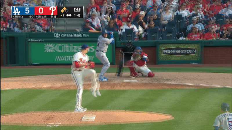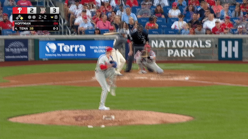 When Hoffman tunnels pitches effectively like this, repeating his delivery and starting them in the same lane, they all look like fastballs out of his hand. And they all come out hot like fastballs, too, forcing hitters to make swing decisions earlier. But one stays up, one moves left, one ducks down, and another runs right. Hitters can only pick one to swing at.