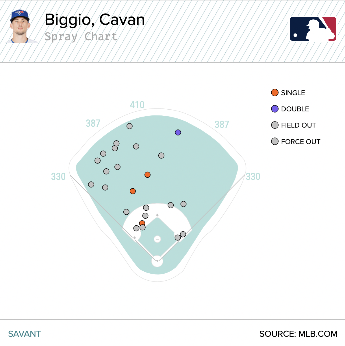 We’re talking about a 91 plate appearance sample, but it’s noteworthy that Biggio is doing all the same things that made him successful earlier in his career. He’s taking his walks, and generating extra-base hits by pulling the ball in the air consistently.