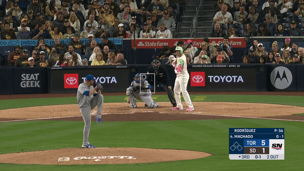 Rodriguez has also been altering his arm slot when throwing fastballs throughout his starts, which only adds to the uniqueness of each one he throws. Here’s a first-pitch heater to Manny Machado in the third inning of Rodriguez’s Saturday start against the Padres: