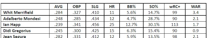 Whit Merrifield, Adalberto Mondesí, Ian Happ, Didi Gregorius, Jean Segura
