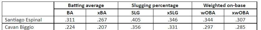Which isn’t to say they can’t play a role on a successful team. Biggio’s strike zone judgment is elite, allowing him to reach base at a .354 career clip. Espinal rarely strikes out, posting an excellent contact rate in an era when hitters are whiffing more than ever. Those traits are undeniably useful. They’re just better suited to a part-time bench role rather than an everyday starter’s one on a contending team.