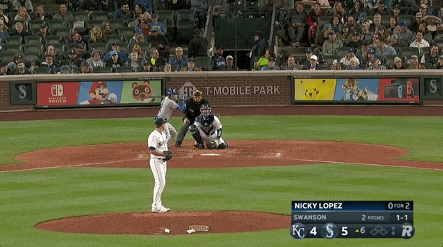 That’s Swanson’s slider. He uses it primarily against right-handed hitters. But as he’s showing you and Lopez here, Swanson isn’t afraid to throw it to lefties. Still, it’s his least-used pitch and for good reason. Its action is unexceptional and it can get hit hard when Swanson misses arm-side and lets the pitch leak out over the plate.