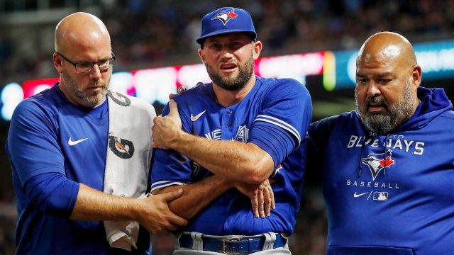 Mayza exited the Blue Jays’ 7-3 loss to the Minnesota Twins on Saturday night following an attempt to grab a bunted ball during a safety squeeze play and colliding with Twins base runner Nick Gordon.