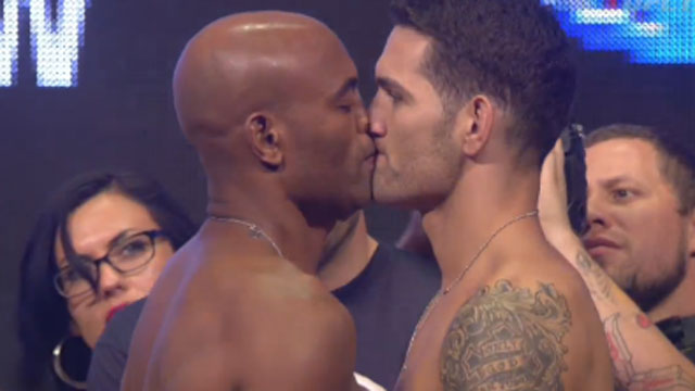 Hands at their sides, the two stared each other down and then Weidman took a step forward. Silva reciprocated and the two found themselves nose to nose and, awkwardly, lip to lip at one point before the challenger took a step back.
