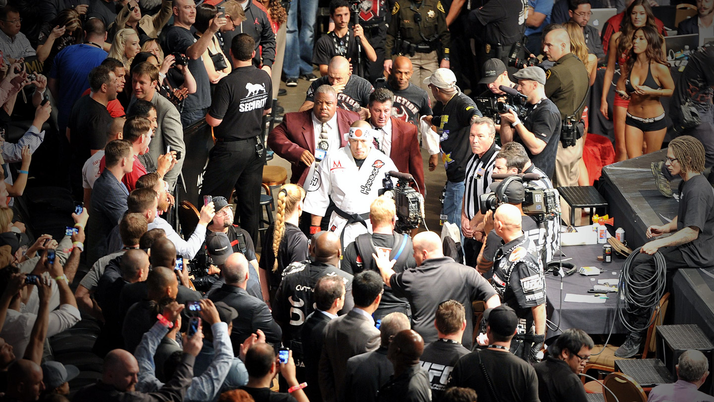 It’s going to happen by finishing either by knockout or submission, and there’s gonna be a new UFC middleweight champion: Georges “Rush” St-Pierre. [He cups his hands over his mouth and imitates a cheering crowd.] Aaaah!