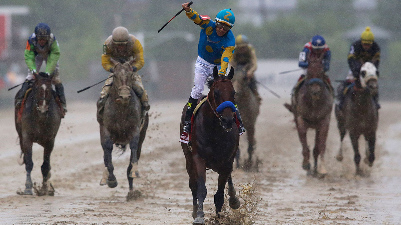 A rainstorm began about 15 minutes before the race went off, preceded by several lightning bolts, but it didn’t affect American Pharoah, a sweet-striding 3-year-old. The colt dealt with similar conditions in winning the Rebel Stakes in March.