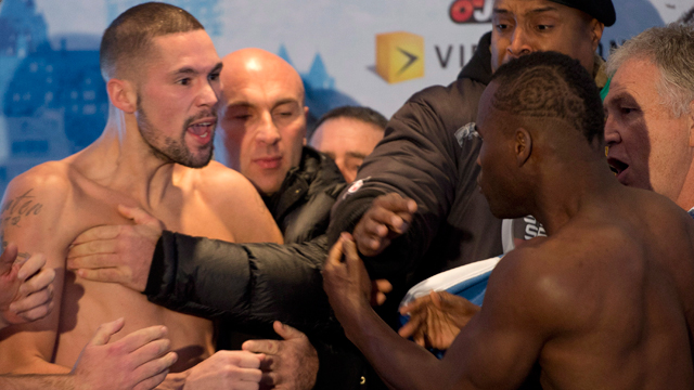 The tension came to a head after the weigh-in — both clocked in at 175 pounds — when they did the traditional face-to-face. Bellew apparently gave Stevenson a tap on the head as some of his fans chanted "pimp, pimp, pimp."