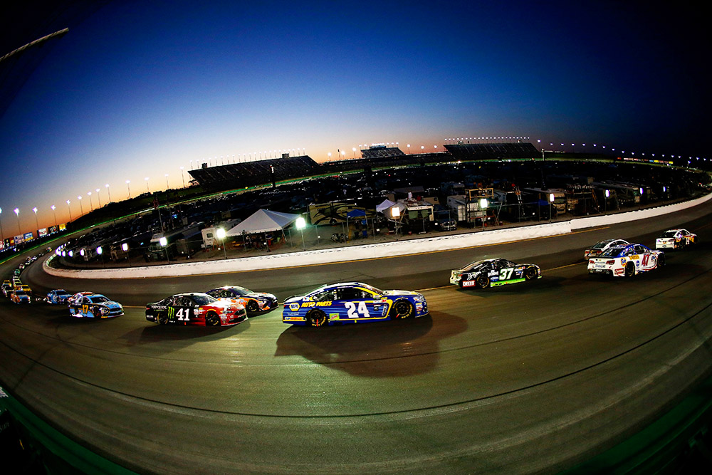 Drivers vie for position during the Quaker State 400 at Kentucky Speedway in Sparta.