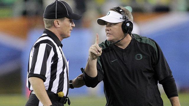 GLENDALE, Ariz. — Fifth-ranked Oregon was awarded a 1-point safety on an obscure rule against No. 7 Kansas State in the Fiesta Bowl on Thursday night.