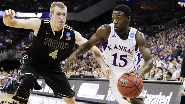 Kansas never led until Johnson hit a deep 3-pointer with just over 3 minutes left to make it 57-56. Terone Johnson answered with back-to-back baskets for Purdue to regain a 60-57 lead, but Taylor’s alley-oop jam off a feed from Elijah Johnson made it a one-point game.