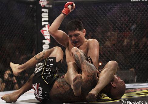 SAN JOSE, Calif. — Strikeforce welterweight champion Nick Diaz defeated Brazilian Evangelista (Cyborg) Santos by second-round submission in a frantic mixed martial arts fight Saturday night.