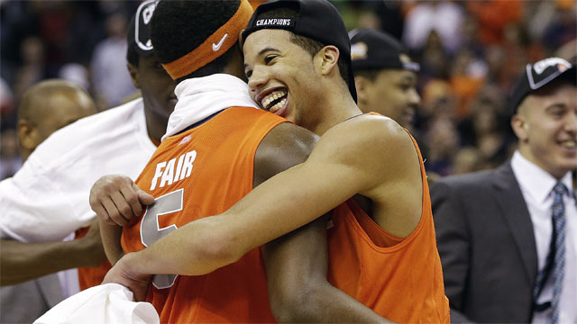 When Southerland hit a 3, off a pass and screen by Carter-Williams, the Orange led 24-18 at halftime.