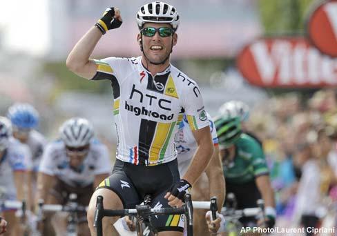 CHATEAUROUX, France — Mark Cavendish won a crash-marred seventh stage of the Tour de France on Friday, capturing his 17th career stage win in the same town where he won his first, as world champion Thor Hushovd retained the yellow jersey.