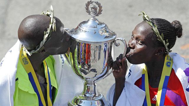 Sharon Cherop won the women’s race to complete the Kenyan sweep, outkicking Jemima Jelagat Sumgong to win by two seconds in 2:31:50. The women’s winner was decided by a sprint down Boylston Street for the fifth consecutive race — all of them decided by three seconds or less.