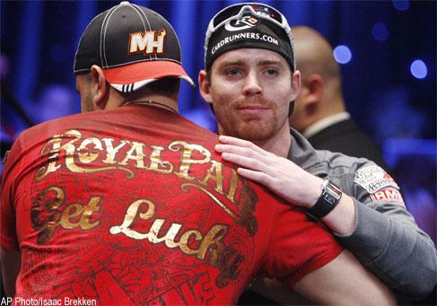 After 64 hands, only about 7.5 million in chips separated 23-year-old Canadian Jonathan Duhamel in the lead from 26-year-old Filippo Candio in fourth place. Duhamel, of Boucherville, Que., and John Dolan, 24, started the day with dominant leads over the rest of the field.