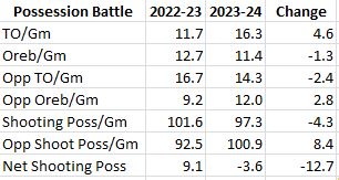 After setting a record for possession advantage last year, they’ve had 25 fewer shooting possessions than their opponents through seven games this year.