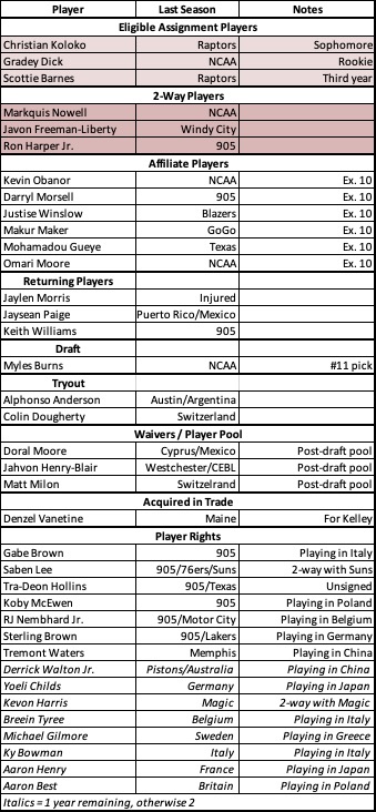 What follows is a look at how the Raptors 905 roster is constructed, with an explanation of the different contracts and player types involved.