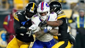 The Commanders crowding the line of scrimmage to take away Barkley after Hurts left had a lot to do with that. Pickett completed 14 of 24 passes for 143 yards, a TD pass to A.J. Brown and an interception in his first meaningful action since Dec. 3, 2023, with Pittsburgh against Arizona — his last game for the Steelers.