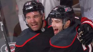 Before that second game against the Golden Knights, Brent Burns apparently asked Gabriel to get everyone going. So he had rookie defenceman Nikolai Knyzhov run him over during warm-up where everyone could see it. It certainly got a laugh out of Burns.