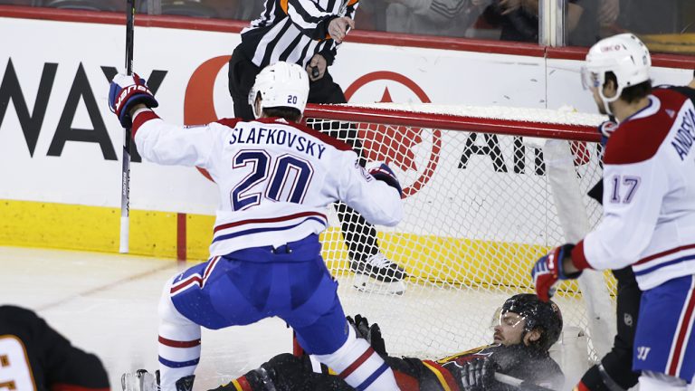 Slafkovsky gave Montreal took the lead just 13 seconds in and the score remained that way until the final minute of the second when Calgary finally drew even.