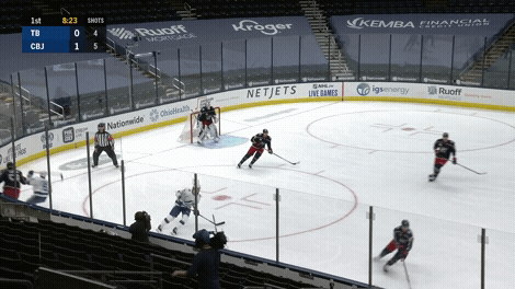 Instead, he guesses on where the player will move the puck (if he guesses right, it’s fun offence time), takes the wrong side of the pile yet again, and Tampa moves it up the ice. Columbus keeps the puck in, and again, PLD takes the offensive side of the puck and player, hoping it skips through.
