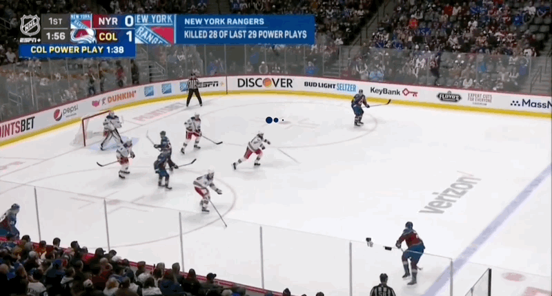 The first way to look at this is the most obvious: points. No one has scored more on the advantage than Roman Josi; the Predators defender has a leading nine goals and 34 points on the power play. The Avalanche's Cale Makar (33) and the Rangers' Adam Fox (32) round out the top three. The Colorado defenseman trails Josi by one goal, while Fox is the league leader in power-play assists from the blue line: all 32 of his power-play points are helpers.