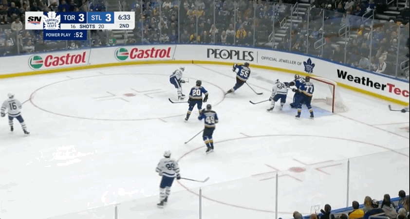 St. Louis' shorthanded goal aside, Marner’s ability to read plays from his perch atop the attacking zone has given Keefe less reason to have a defenceman there. Marner has blocked five clearing attempts over the past seven games, extending offensive zone possession time for Toronto.
