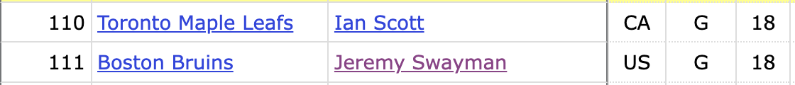 The Bruins nabbed Swayman at 111th, the very next pick, kickstarting the C-rated prospect's dream and adding to the cringe-inducing history that the Maple Leafs have with goalie prospects and the Bruins.
