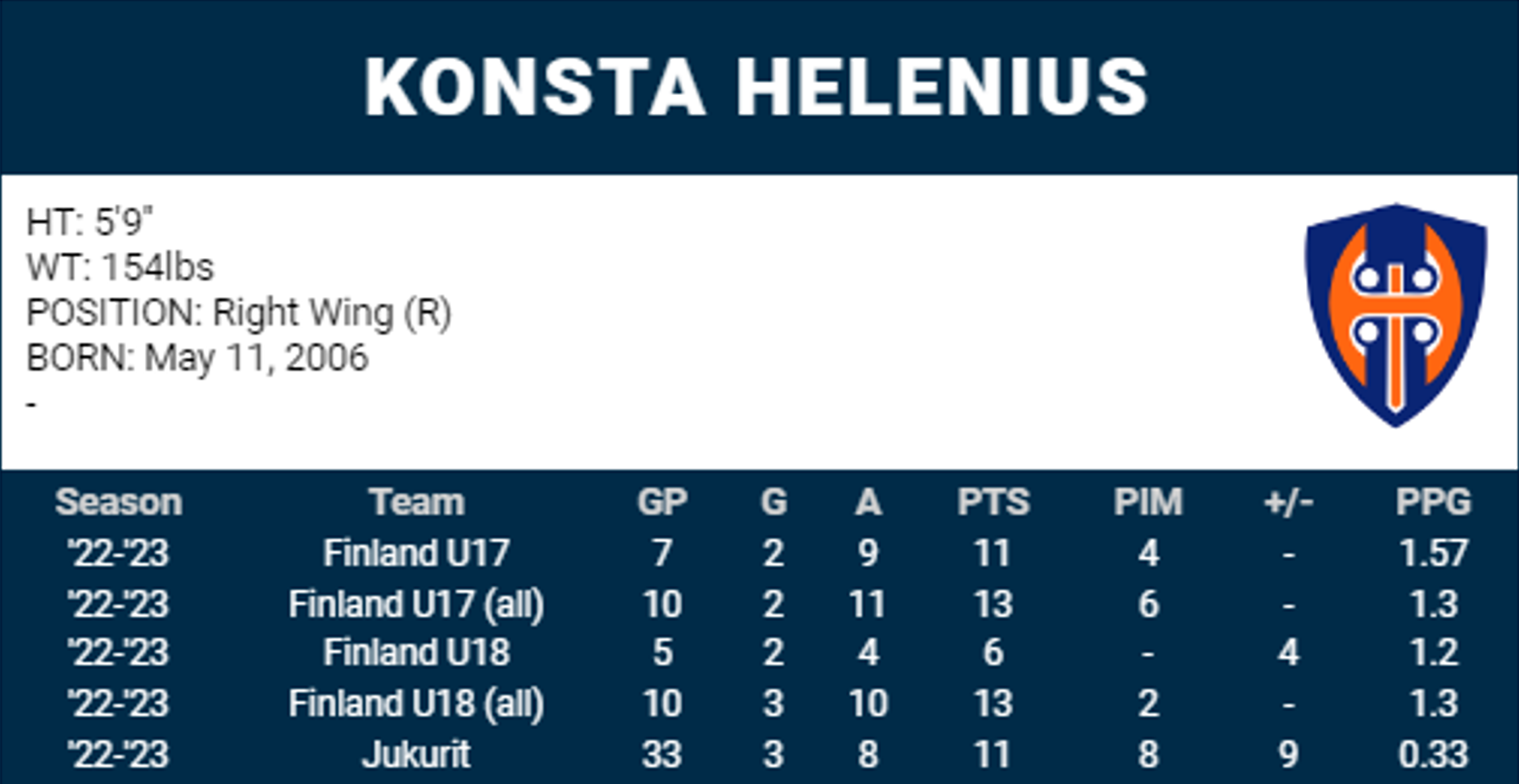 Scouting Report: Helenius is a darting forward who played at the U17, U18, and pro level (Liiga) in Finland this pasts season. He’s enjoyable to watch. Helenius is tenacious as F1 on the forecheck. He has fantastic vision and playmaking upside. He attracts defenders then slides pucks to his open teammates. The conversation will ultimately come down to his stature, but he doesn’t shy away and his skating allows him to arrive ahead of contact.