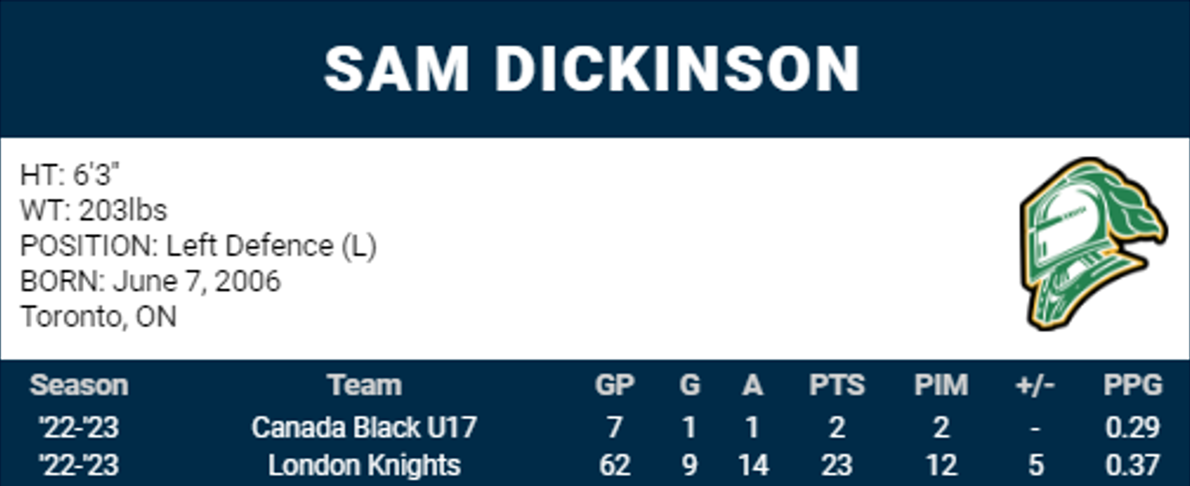 Scouting Report: Dickinson played a huge role for the London Knights during their march to the OHL Championship series. Dickinson leans two-way defenceman, but his skating and hockey IQ are elite. He will be used in all situations again next year in London. I expect his offensive numbers to increase substantially.
